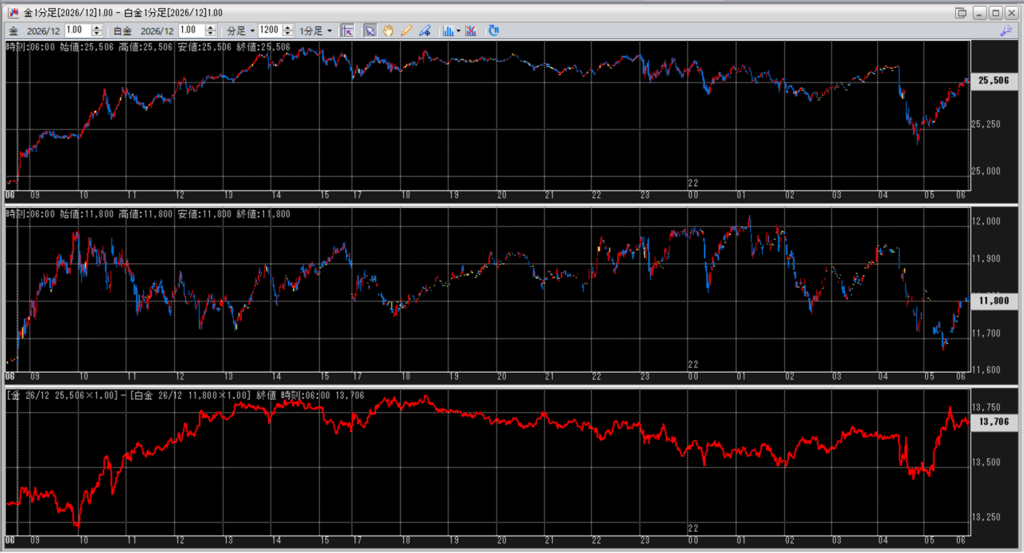 注目していた値段を超えてきたことで、金白金鞘は拡大していくのか。