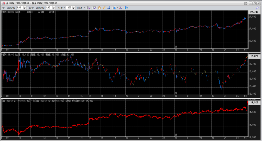 下記に金白金鞘の移動平均線のチャートを貼り付けています。