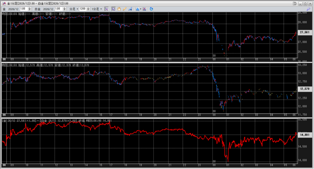 ここ各2日間、1,000円以上の鞘の値動きが続いています。