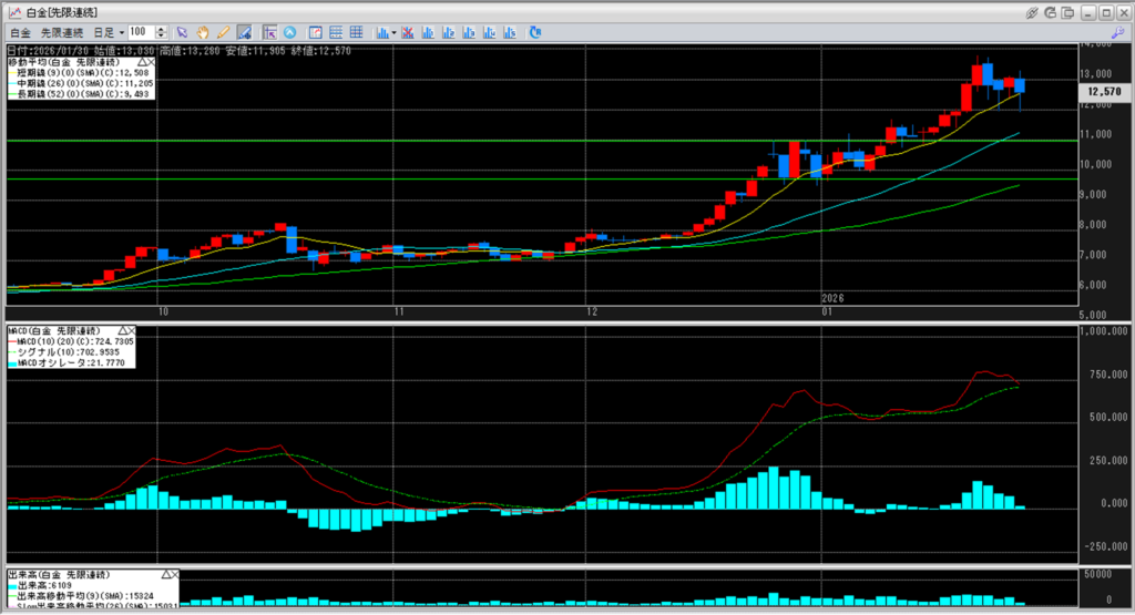 今度は11,000円がサポートラインとなり、白金価格を下支えしていくのか。