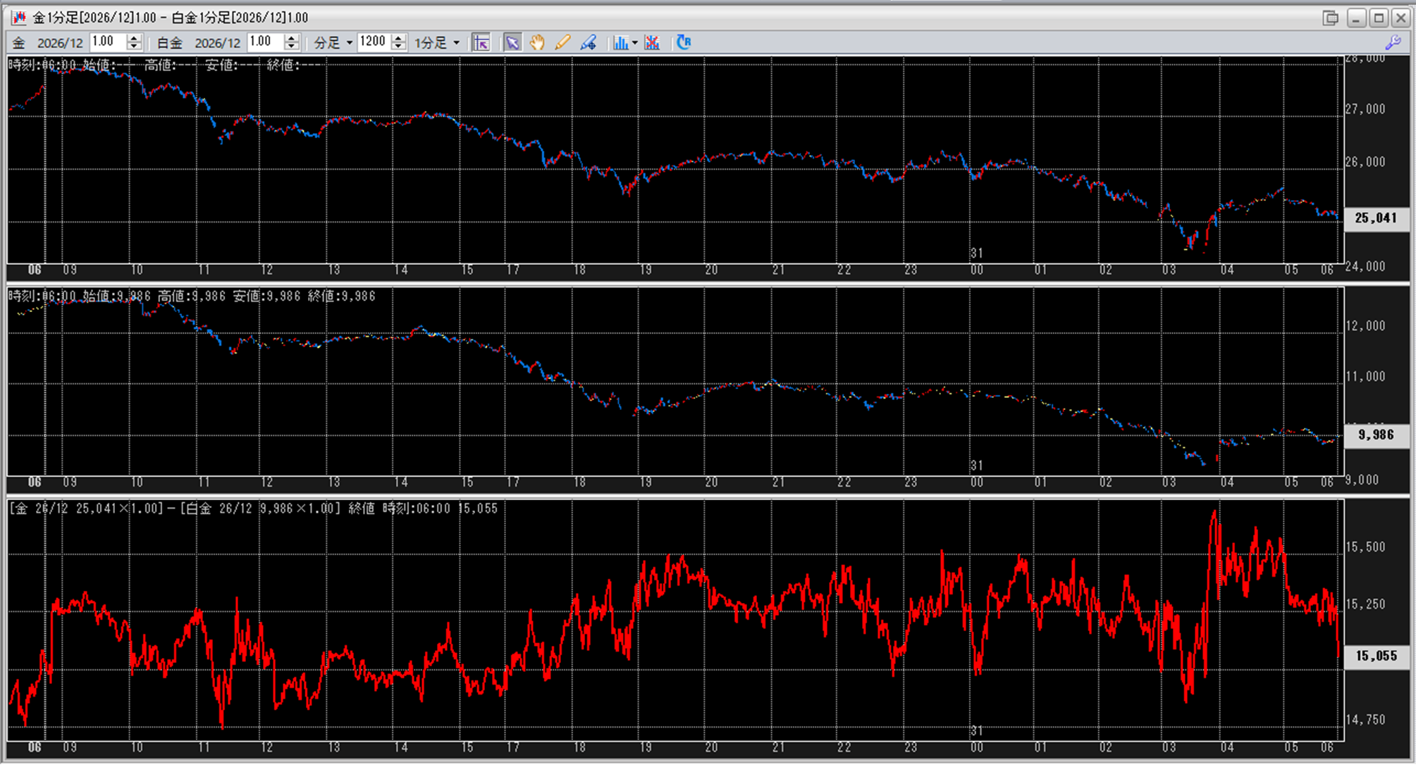 中:大阪取引所 白金 2026年12月限 1分足
