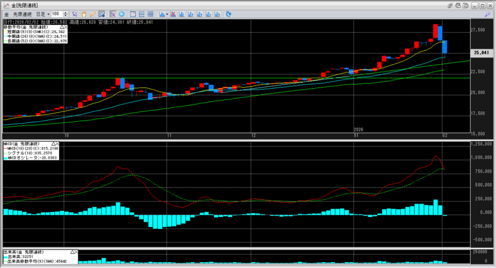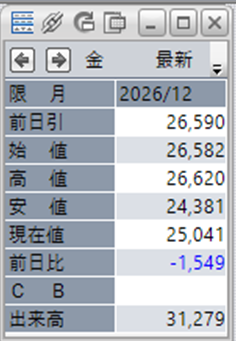 上:大阪取引所 金 2026年12月限 1分足