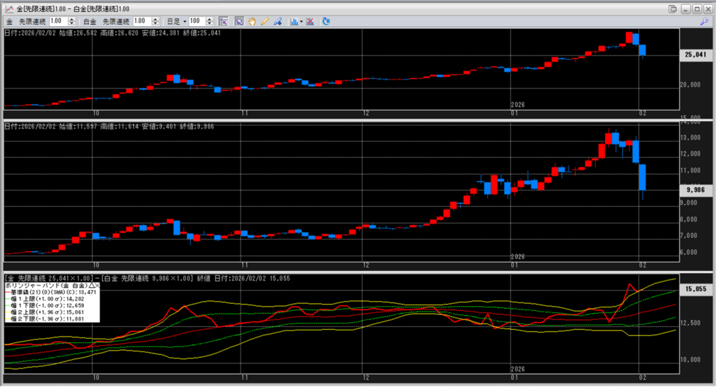 金白金の鞘をボリンジャーバンドで見ていきます。